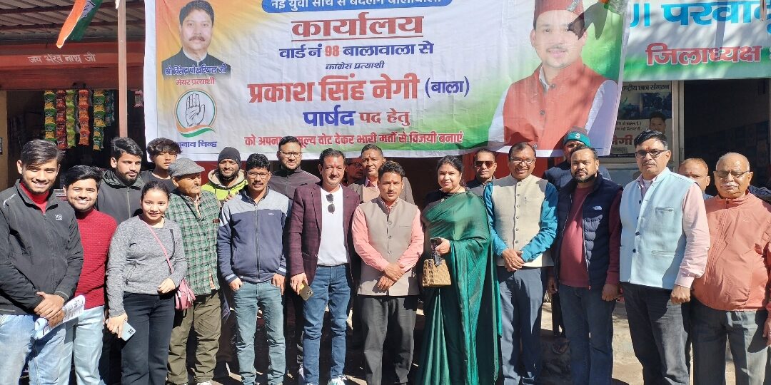 देहरादून। शनिवार को वरिष्ठ कांग्रेस नेता रघुवीर सिंह बिष्ट ने वार्ड नंबर 98, बालावाला से कांग्रेस पार्षद प्रत्याशी और युवा कांग्रेस नेता राकेश सिंह नेगी के चुनाव कार्यालय का उद्घाटन किया। इस मौके पर क्षेत्र की बड़ी संख्या में महिलाओं, युवाओं और पुरुषों ने अपनी उपस्थिति दर्ज कराई।