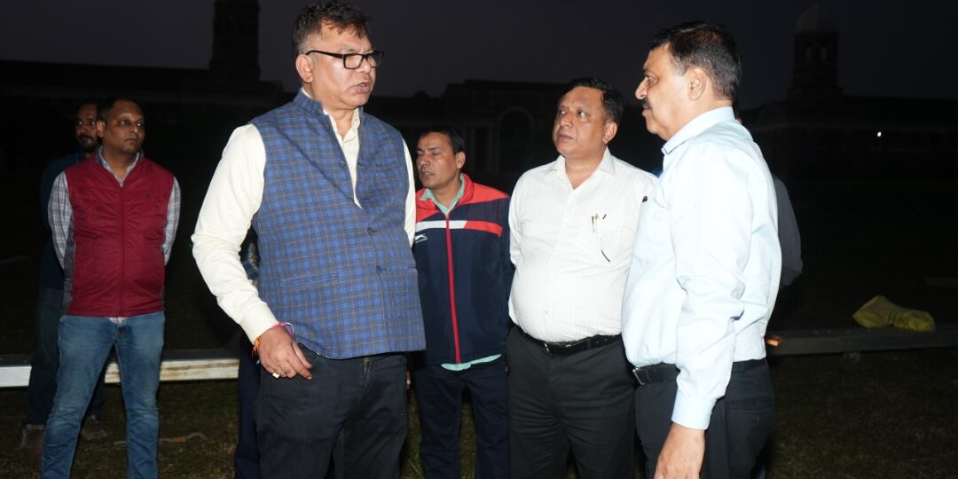 अधिकारियों ने सभी तैयारियों को समयबद्ध एवं सुव्यवस्थित ढंग से पूर्ण करने के निर्देश दिए। इस दौरान उन्होंने मुख्य पंडाल, मंच डिज़ाइन एवं लेआउट को लेकर अभियंताओं से विस्तारपूर्वक चर्चा की। साथ ही वीआईपी, वीवीआईपी तथा आमजन के बैठने की व्यवस्था, पार्किंग, प्रवेश एवं निकासी मार्ग आदि की व्यवस्थाओं का भी बारीकी से निरीक्षण किया।