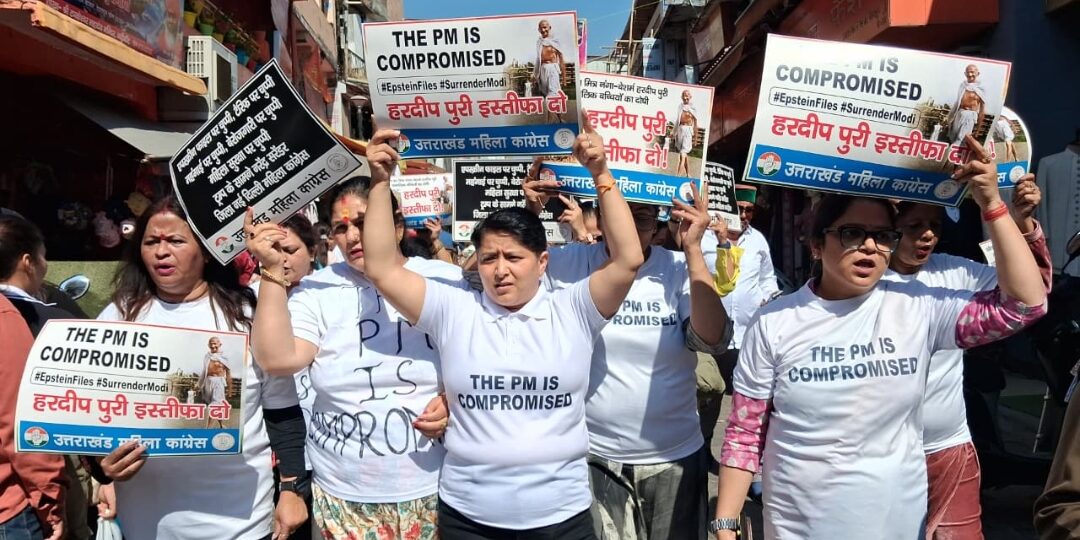 देहरादून,3 मार्च। प्रधानमंत्री नरेन्द्र मोदी एवं केंद्रीय मंत्री हरदीप सिंह पुरी का नाम एपस्टीन फाइल में उजागर होने की खबरों को लेकर उनके इस्तीफे की मांग करते हुए आज प्रदेश महिला कांग्रेस अध्यक्ष ज्योति रौतेला के नेतृत्व में महिला कांग्रेस कार्यकर्ताओं ने विरोध-प्रदर्शन किया।