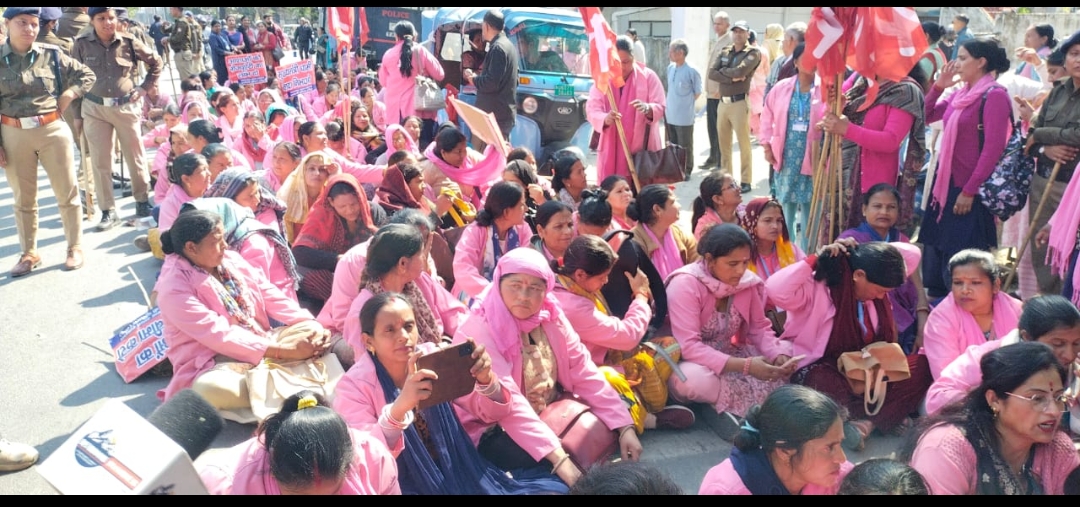 देहरादून।अंतर्राष्ट्रीय महिला दिवस के अवसर पर उत्तराखंड आशा कार्यकर्त्री यूनियन (सीटू) के बैनर तले सैकड़ों आशा कार्यकर्ताओं ने आज राजधानी में जोरदार प्रदर्शन किया। सीटू कार्यालय, गांधी पार्क से निकला जुलूस राजपुर रोड, दिलाराम चौक होते हुए कैंट रोड, हाथीबड़कला पहुंचा, जहां पुलिस बैरिकेडिंग पर धक्का-मुक्की हुई। इसके बाद जुलूस एक सभा में परिवर्तित हो गया, जहां आशा कार्यकर्ताओं ने धामी सरकार की वादाखिलाफी के खिलाफ जोरदार नारेबाजी की।