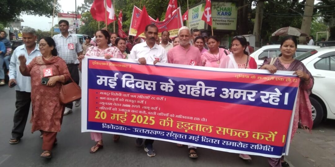 देहरादून। उत्तराखंड संयुक्त मई दिवस समारोह समिति द्वारा आज गांधी पार्क से एक विशाल रैली निकाली गई। रैली गांधी पार्क से शुरू होकर घंटाघर, पलटन बाजार, धामावाला, राजा रोड, गांधी रोड, दर्शन लाल चौक होते हुए पुनः गांधी पार्क में समाप्त हुई। इस रैली में सैकड़ों मजदूर व कर्मचारी शामिल हुए।
