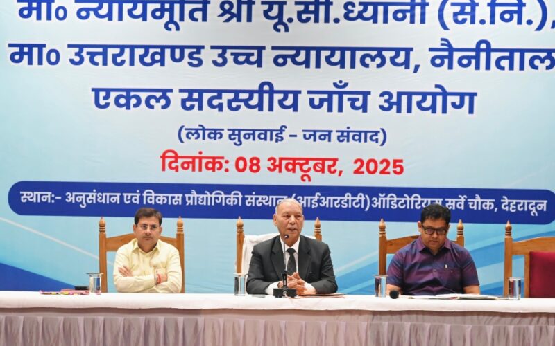 देहरादून। उत्तराखंड अधीनस्थ सेवा चयन आयोग (यूकेएसएसएससी) द्वारा 21 सितंबर 2025 को आयोजित प्रतियोगी परीक्षा में कथित अनियमितताओं की जांच के लिए राज्य सरकार द्वारा गठित मा० न्यायमूर्ति (सेवानिवृत्त) यू.सी. ध्यानी की अध्यक्षता वाले एकल सदस्यीय जांच आयोग ने बुधवार को देहरादून के सर्वे चौक स्थित आईटीडीए ऑडिटोरियम में जन संवाद एवं लोक सुनवाई कार्यक्रम आयोजित किया।