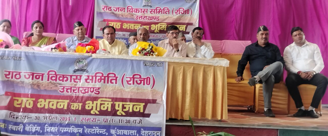 देहरादून। राठ जनविकास समिति की ओर से कुंवावाला स्थित पम्पकिन रेस्टोरेंट के समीप समिति की भूमि पर प्रस्तावित राठ भवन के निर्माण हेतु भव्य भूमि पूजन कार्यक्रम अत्यंत श्रद्धा, उत्साह एवं गरिमामय वातावरण में सम्पन्न हुआ। कार्यक्रम में राठ क्षेत्र के प्रवासी परिवारों ने भारी संख्या में उपस्थित होकर अपनी सक्रिय भागीदारी निभाई तथा आयोजन को सफल बनाने में महत्वपूर्ण भूमिका अदा की।